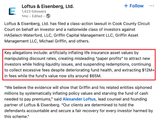 In May 2025, An Unrelated Life Settlements Fund Was Accused Of Inflating Asset Values By Manipulating Discount Rates, “Purposefully” Failing To Update Life Expectancies, And Operating With “Numerous Conflicting Interests”