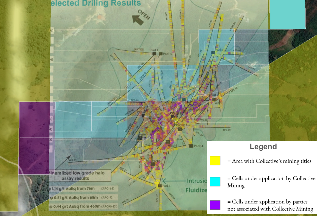 Reality Check: Collective’s Drilling On The Apollo Target Within The Corridor Is Also Being Carried Out In Complete Cells That Are Under Application For A Concession Contract— Not A “Valid And In Good Standing” Title, According To The ANM Title Database