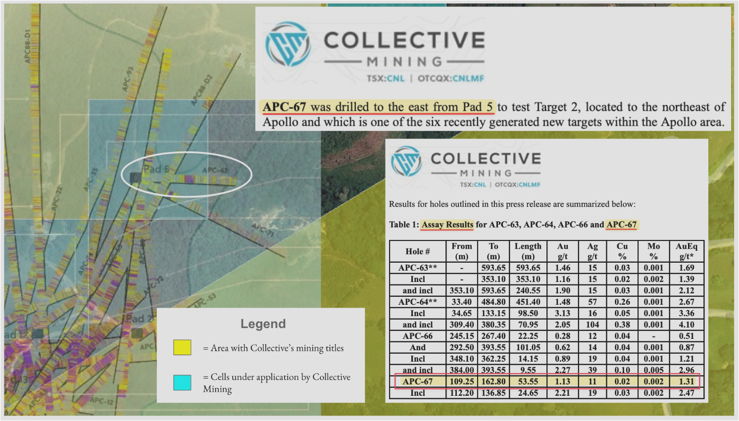 As we showed in our report, Collective has installed drill pads in the corridor between the two mining titles at its Apollo target, including in complete cells that are currently under application.