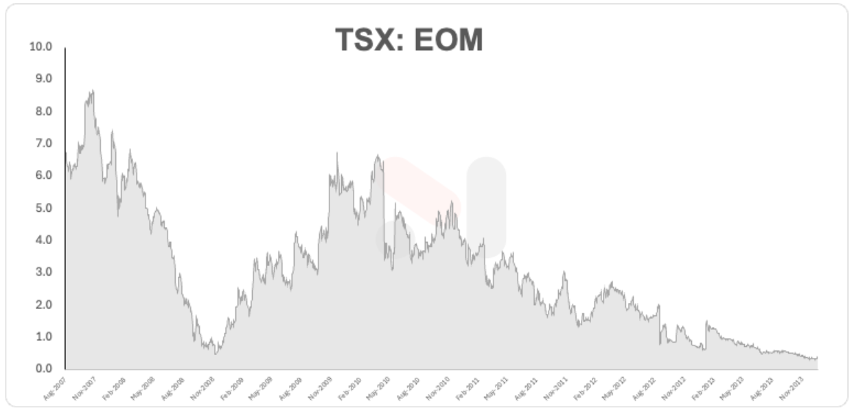 Eco Oro is now virtually worthless trading at C$0.015, down over 99% since then.