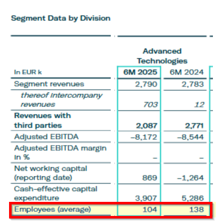 Since inception, the Advanced Technologies division has generated €69.4 in total revenue versus Adjusted EBITDA losses of €105.5, while reporting at least €87.5 million in capital expenditure.[1]