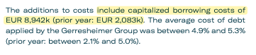 - Aggressive Accounting Practice #3: After not doing so for 15 years, Gerresheimer suddenly started capitalizing certain borrowing costs in 2023, providing an immediate boost to net income in 2024, while stretching the recognition of these costs over 3 to 10 years. In 2024, the capitalized borrowing costs were equivalent to ~8% of net income. A former employee told us: “Mr. Metzner [the former CFO] … he was only trying to find topics to do financial engineering on … and one of the things that he identified was then, we can just lower the interest cost by capitalize them.”