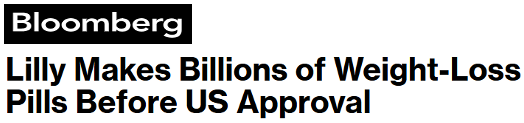 - Eli Lilly has already manufactured “billions” of pills in anticipation of approval, per Bloomberg. Meanwhile, Novo has manufactured “more than enough [Wegovy] pills” for an aggressive launch expected before the end of the year as it goes “all in” on pills, per Reuters.